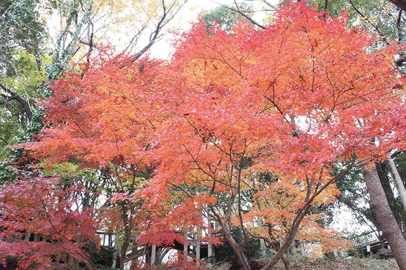赤塚山公園は四季折々の景色が自慢。秋には、紅葉が広がり風情を感じることができます。