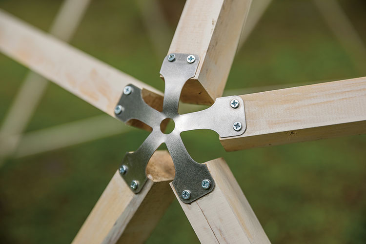 そして、昨年末には、ヒトデの形をイメージした金属から木と木を組み合せた、幾何学ドームが印象的な「hitode bracket(ヒトデブラケット)」が誕生。自分で組み立てることができ、DIY感覚で半球ドームが作れると、キャンプやイベントなどにも利用されているそう。仲間や家族みんなで協力して作ることで、ものづくりの愉しさ、面白さを体感することができる。