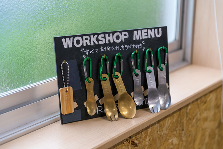 当時は、木工で作られた大きな三角定規やコンパスなどの学校用教材を製造していたが、現在は自動車部品の生産や金属加工などにシフト。8年ほど前に、〝新しいモノ・コトを通じてものづくりの興味関心を持ってほしい〟と、アルミや真鍮を使ったスプーンやフォークを作るものづくりワークショップがスタート。