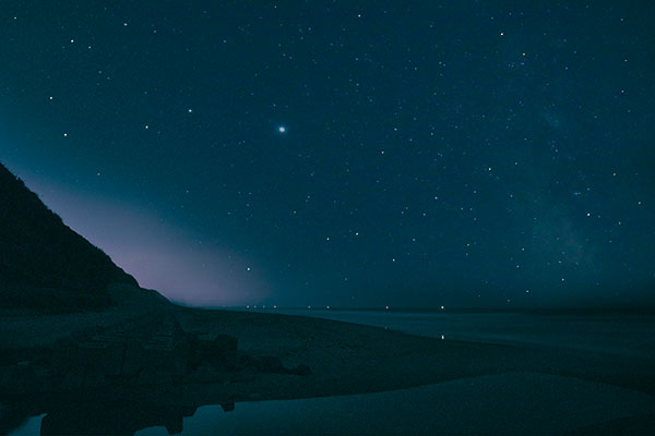 フォトグラファー・中島林太郎氏がレクチャーする星空写真ツアー。一直線に延びる水平線上に浮かぶ、数えきれない星と天の川。理想の1枚の撮影をサポートしてくれる。