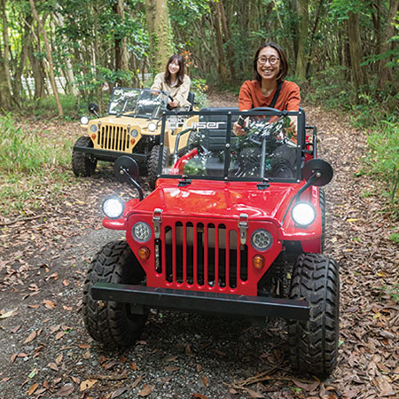 豊橋を知り尽くした専属ガイドが、田園風景や海、ジャングルのような森林など、豊橋の魅力をぎゅっと詰めこんだ場所を案内してくれる。実際に運転してみると、海を全身で体感することができ、迫力満点!普通免許があれば誰でも運転することができ、乗車方法もレクチャーしてくれるので安心。