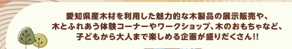「ウッドコレクションin東三河2025」は、愛知県東三河地域を中心とした林業・木材産業の振興と、県民が木材の良さを体感できるイベントです。私たちもこのイベントに出展し、