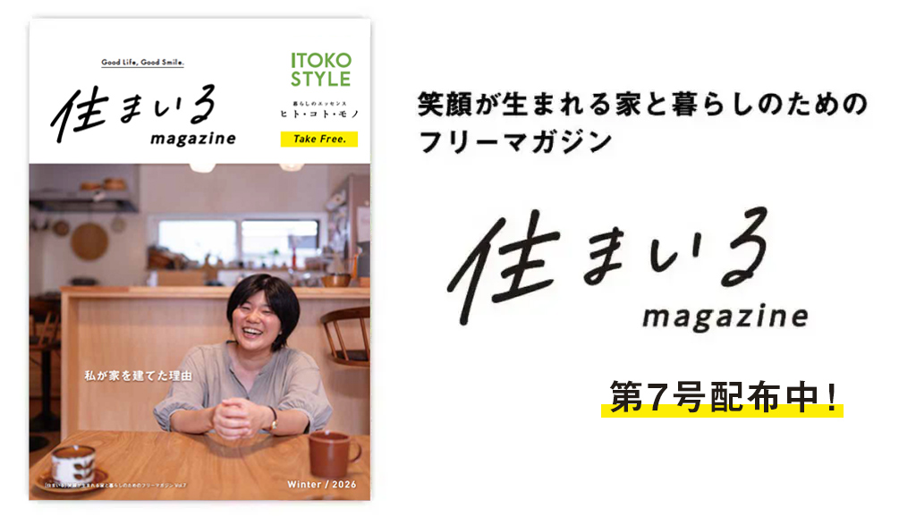 「住まいる」は、イトコーの家づくりの「自然とともに、愉しく健康的に暮らす」という考え方を皆様に知っていただき、暮らしに活かしていただければという想いで創刊したフリーマガジンです。